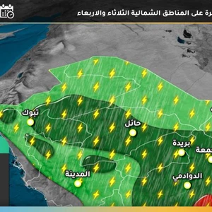 ويُتوقع بمشيئة الله أن تتزايد فرص الأمطار الرعدية في منطقتي حائل والقصيم اعتباراً من ساعات عصر الثلاثاء، اذ يتوقع ان تتكاثر السُحب الركامية الرعدية، وأن تتهيأ الفرصة لتساقط زخات من الأمطار، تترافق بالبرق والرعد وربما نشاط للرياح الهابطة المثيرة للغبار قُبيل هطول الأمطار.