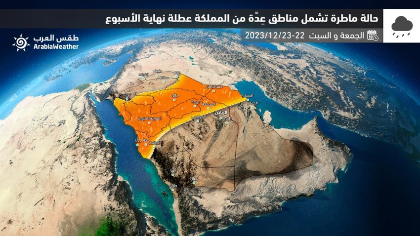 طقس العرب - تُشير أحدث الخرائط الجوية في مركز طقس العرب الإقليمي توقعات بأن تتأثر مُعظم مناطق المملكة السعودية خلال الثلث الأخير من شهر ديسمبر/كانون الأول بحالات جوية ماطرة، نتيجة اندفاع عِدّة منخفضات جوية في طبقات الجو العالية نحو شبه الجزيرة العربية بالتزامن مع استجابة سطحية لمُنخفض البحر الأحمر و تدفق للرطوبة نحو المنطقة.