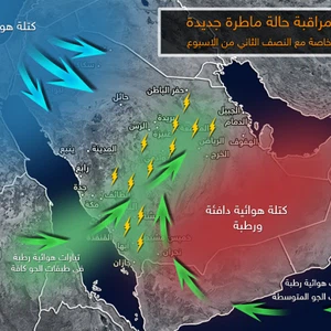 تُشير آخر التوقعات الجوية على تأثر أجزاء واسعة من المملكة العربية السعودية بحالة جديدة من عدم الاستقرار الجوي، تتجدد على إثرها الهطولات المطرية المتوسطة والغزيرة في مناطق واسعة من المملكة اعتباراً من الأحد