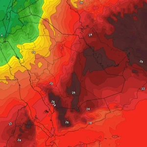 طقس العرب - تشير آخر مُخرجات النماذج العددية الحاسوبية إلى استمرار تأثر أغلب مناطق المملكة العربية السعودية بمرتفع جوي في طبقات الجو العليا، وما يصاحبه من كتلة هوائية حارة نسبياً إلى حارة عبر طبقات الجو المُنخفضة. تبقى درجات الحرارة أعلى من معدلاتها المناخية بعدة درجات مئوية، فيما تتأثر المناطق الشمالية بكتلة هوائية أقل حرارة قادمة عبر الحوض الشرقي للبحر المتوسط.