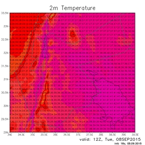 ويُتوقع أن تصل العظمى الى 37 مئوية لا سيما في الأحياء الشرقية لمدينة عمان الأقل ارتفاعا في حين تقترب من الأربعين مئوية في مناطق البادية والاغوار والبحر الميت والعقبة وتبقى في مطلع الثلاثينات فوق الجبال العالية.