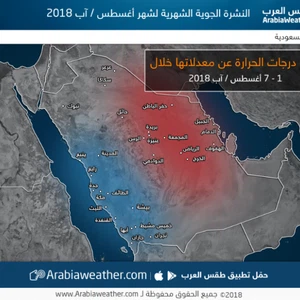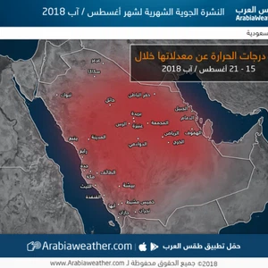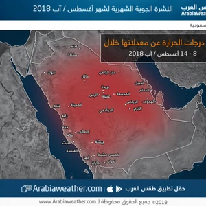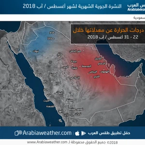 - يبدأ شهر اب بأجواء صيفية مُعتدلة في شمال وغرب المملكة بينما تكون حارة في باقي المناطق.