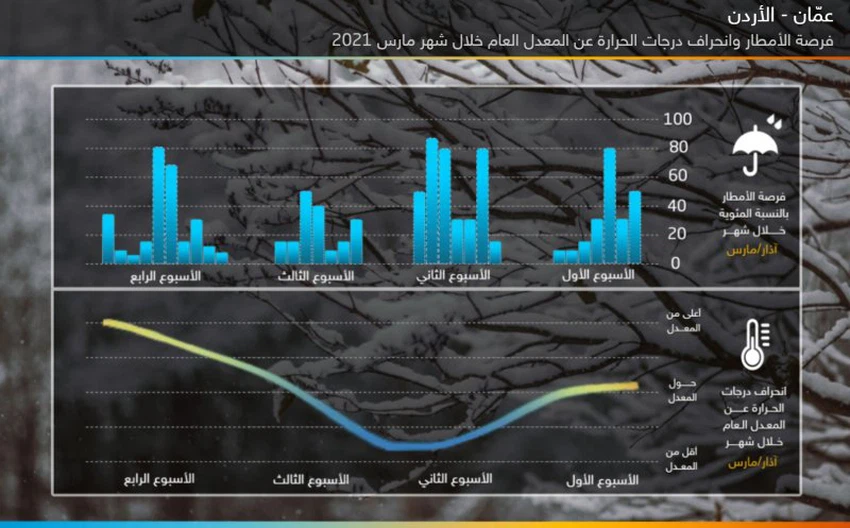 الأردن | مارس/آذار 2021: تباين كبير في الطقس من فترة لآخرى .. شهر مُبشر لاقتراب أغلب المناطق من مُعدلاتها السنوية من الأمطار.