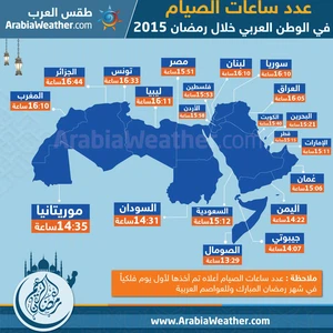 ويجري تحديد عدد ساعات الصيام التي تختلف من دولة لأخرى في الوطن العربي وتمتد من ساعات الفجر حتى الغروب، طبقاً لوقوع البلدان على خطوط الطول والعرض. حيث سيشهد رمضان في النصف الشمالي للكرة الأرضية لهذا العام أطول مدة صيام منذ سنوات، وفقا للفلكيين.