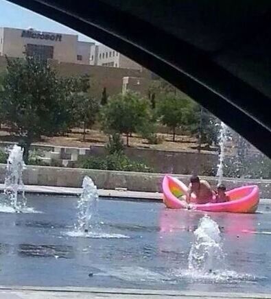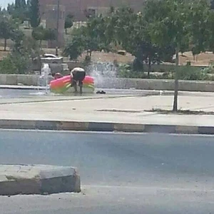 ArabiaWeather.com - أثارت صور تداولها ناشطون عبر مواقع التواصل الإجتماعي لأحد المواطنين في الأردن برفقة ابنه، ومعهما قارب بلاستيكي يقومون باللعب والسباحة بالمياه داخل نافورة دوار المدينة الطبية في العاصمة عمان.