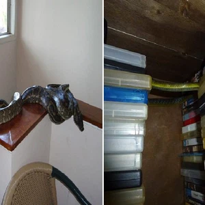 أما النتيجة فجاءت في صور لا تصدق، لأفاعي بالأركان والحدائق، منها ما هو معلّق في السقف فوق لمبات الإضاءة وبين أرفف الكتب وعلى السلم وحتى على حبال الغسيل.