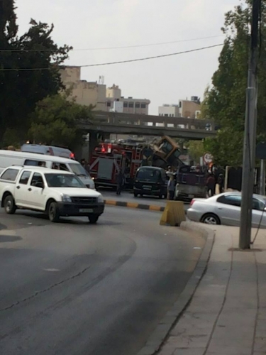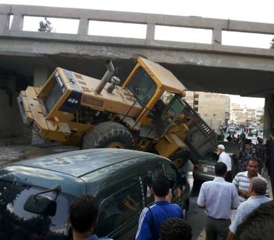 وأكد شهود العيان الذين تواجدوا في المكان أن الجرافة كانت على متن ناقلة مركبات، الامر الذي أدى الى ارتطامها بجسر صويلح، بسبب ارتفاعها؛ مسببة أزمة سير.