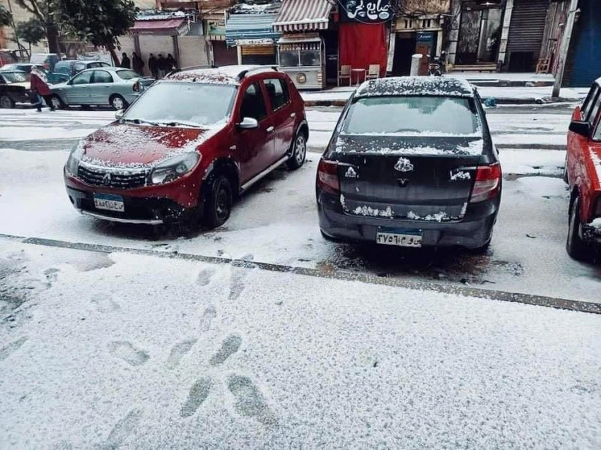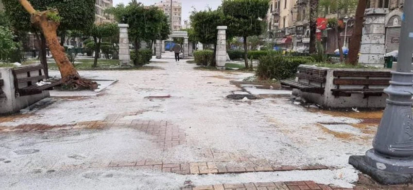 بالصور: عاصفة بَرَدية أثرت على أجزاء من الإسكندرية واكتست الأرض بالبياض