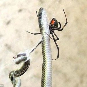 بالصور: عنكبوت مُفترس يصطاد أفعى ويلتهمها على عدة أيام!