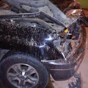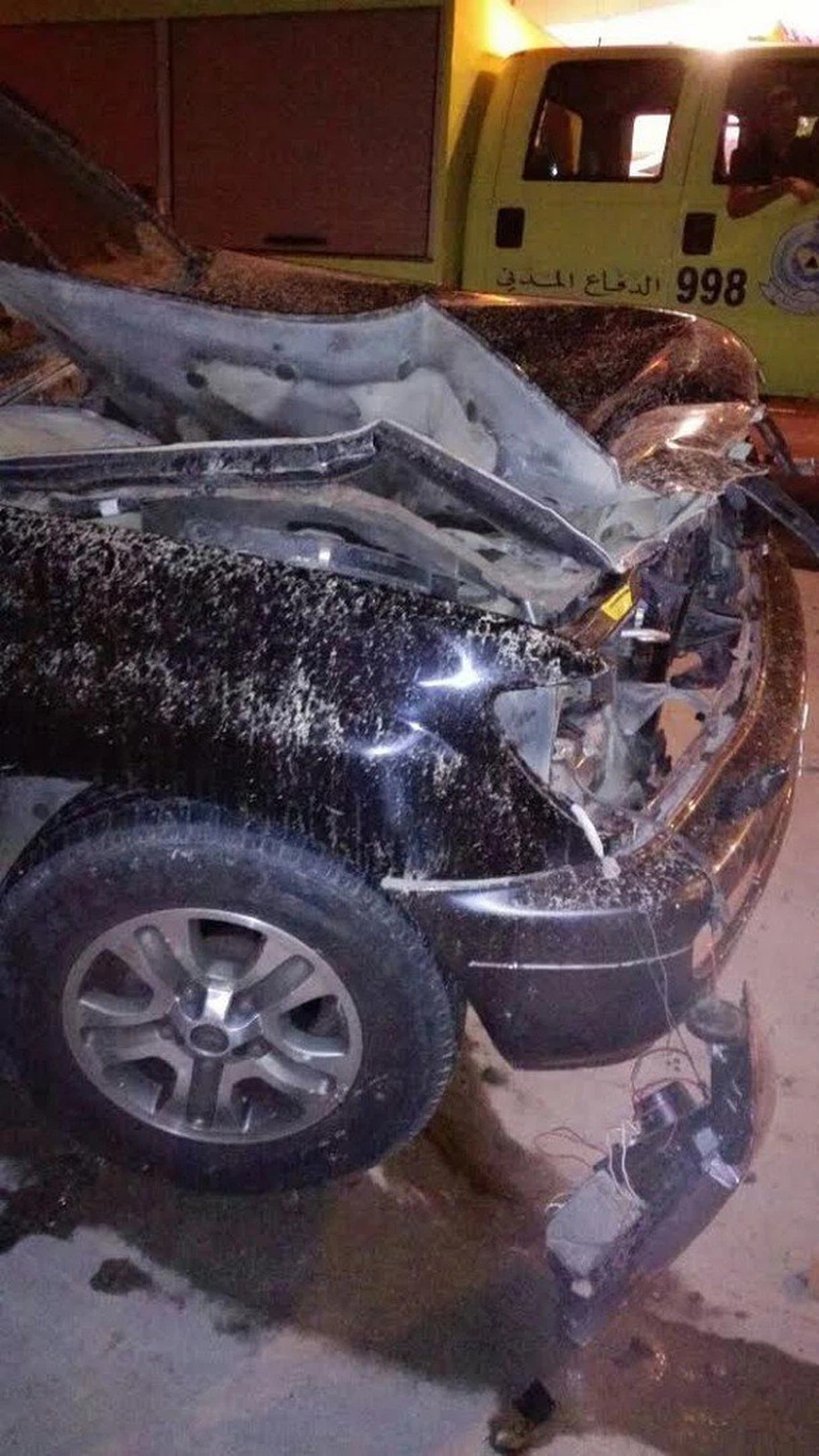 ودمرت الصخرة موتور المركبة وأدت إلى تعطلها وتوقفها عن العمل، بينما قام الدفاع المدني بإزاحة تلك الصخرة عن ظهر المركبة، فيما حضر المرور مباشرة لمكان الحادث، وفق صحيفة سبق.