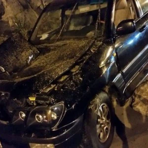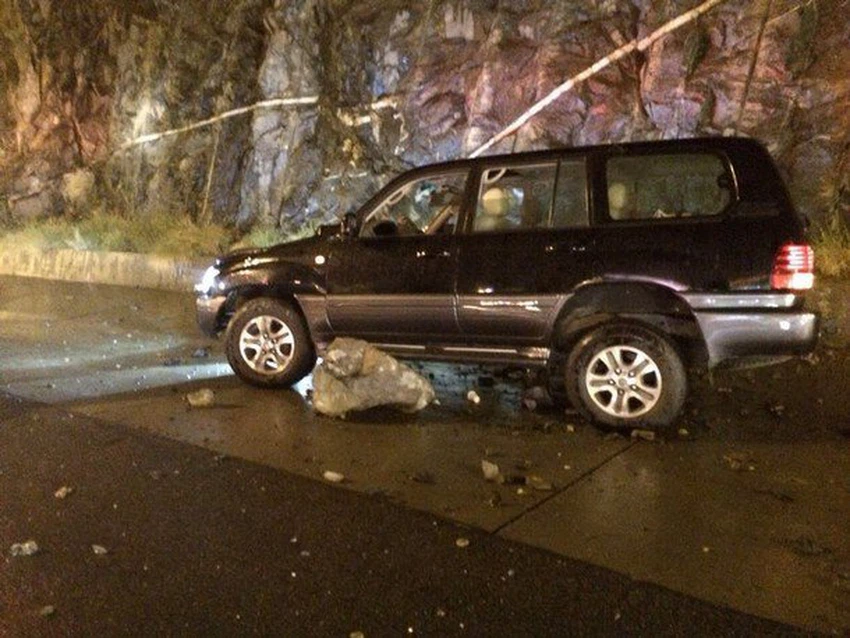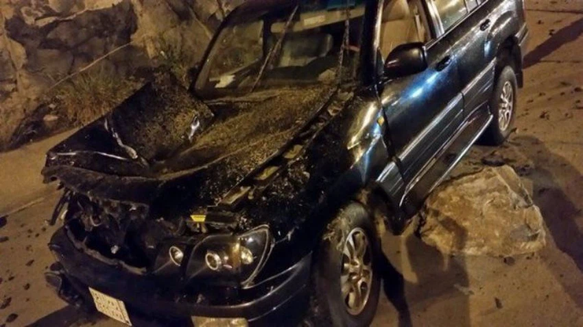 بالصور: نجاة أفراد أسرة سعودية بعد سقوط صخرة على مركبتهم واتلافها