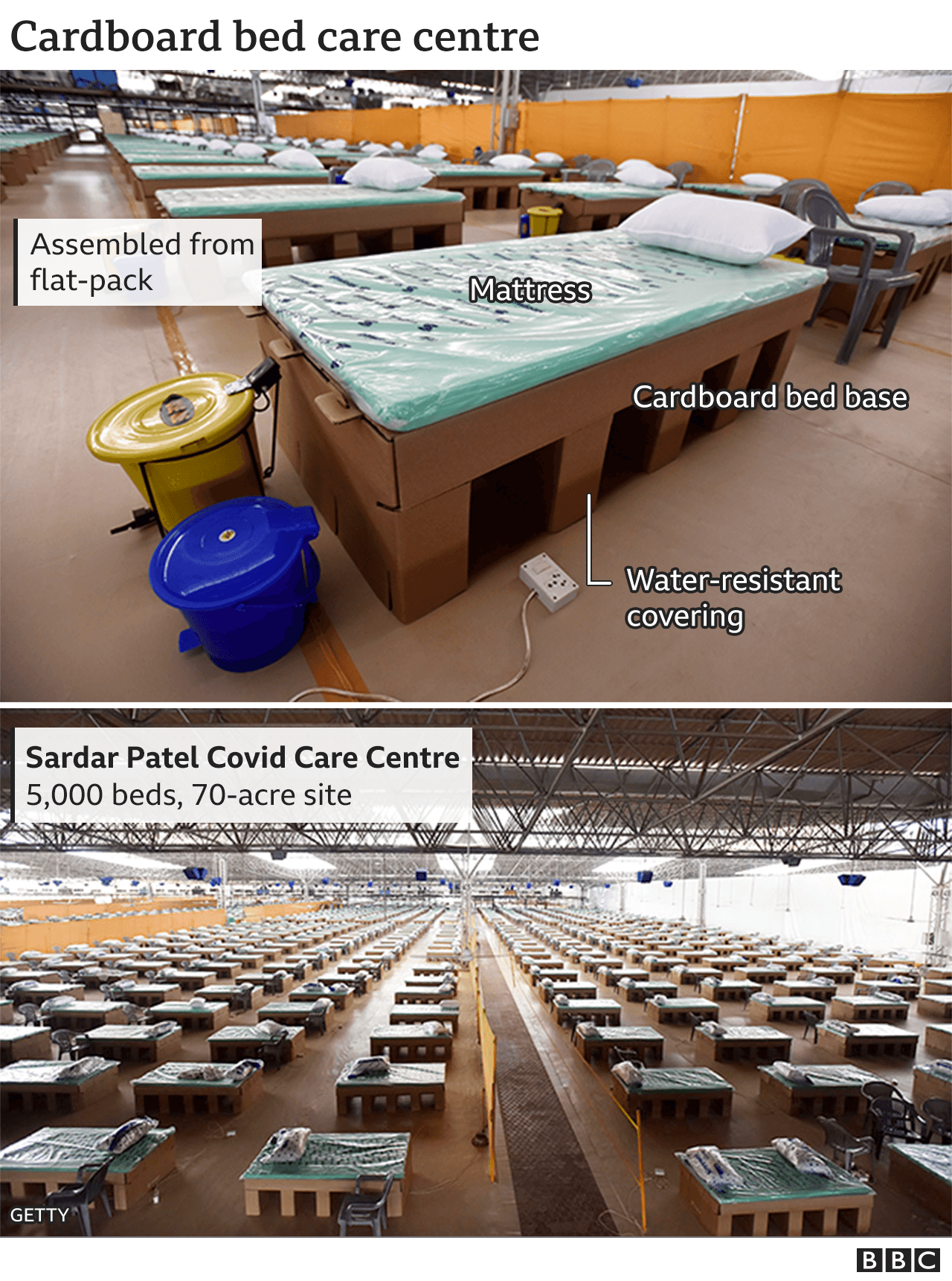 يقول ورق آريان ، الذي يصنع قواعد الأسرة من الورق المقوى ، إن أسرة الطوارئ مصنوعة من لوح مموج عالي القوة. وهي مفيدة بشكل خاص في الأزمة الحالية لأنها رخيصة الثمن وقابلة لإعادة التدوير ويمكن تعبئتها بشكل مسطح لسهولة النقل ويمكن تجميعها في خمس دقائق.