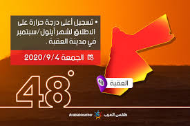 استمرت موجة الحر اللاهبة التي شهدتها الاردن والحوض الشرقي للبحر المتوسط، ومدينة العقبة في الاردن تسجل أعلى درجة حرارة في الكرة الأرضية كاملةً يوم 5-9-2020 حيث وصلت درجة الحرارة إلى 48.5 مئوية.