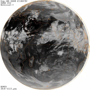 مشاهدة تطور سحب رعدية قوية الى غرب السعودية وشمال الكويت نتيجة التقاء الهواء البارد الوليد حديثا مع الكتل الهوائية المحلية والحارة الرطبة في نهاية صيف 2008