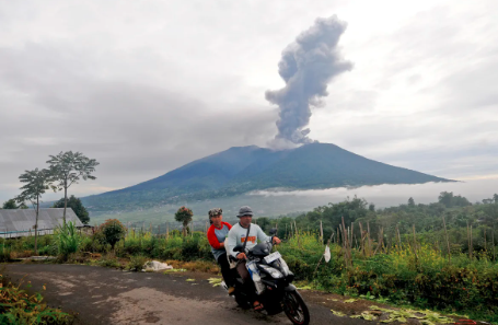 أظهرت لقطات من وكالة رويترز سحبًا ضخمة من الرماد الرمادي تتصاعد من فوهة بركان ميرابي، حيث يستمر السكان المحليون في ممارسة حياتهم اليومية من مسافة آمنة، وبعد ثوران البركان الذي وقع الأسبوع الماضي، منعت السلطات المحلية الناس من تسلق البركان، والذي كان الأكثر دموية منذ عام 1979 حينما أسفر عن مصرع 60 شخصًا.