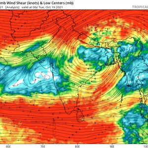 ومع انتصاف شهر أكتوبر ما زالت الشرقيات مُسيطرة على أجواء بحر العرب، التي تتسبب بانسحاب الرياح الموسمية بمشيئة الله، وما يُرافقها من ضعف واضح في نشاط رياح القص على معظم انحاء بحر العرب، مما يعني أن النظام المداري لو تكون سيكون بمقدوره التطور وزيادة النمو العمودي للسحب الركامية المُرافقة.
