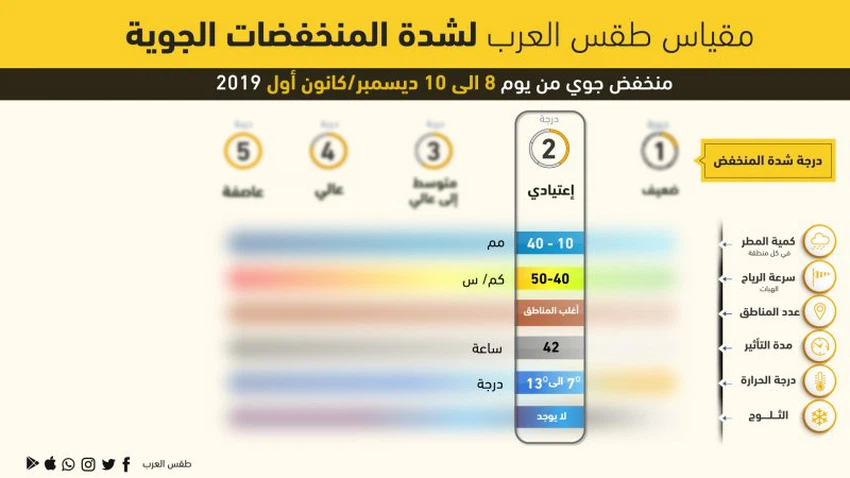 طقس العرب - تُشير آخر البيانات الجوية المُستلمة لدى مركز "طقس العرب" الإقليمي للأرصاد و التنبؤات الجوية إلى أن مُنخفضاً جوياً جديداً سيؤثر على المملكة مطلع ومُنتصف الأسبوع المُقبل ويُصنف حالياً بأنه من الدرجة الثانية إلا أن كادر التنبؤات الجوية أفاد بأن هذا المُنخفض الجوي قد يتطور وفق آخر البيانات الجوية المُحللة لديهم.