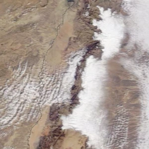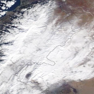 حيثُ أظهرت صور الأقمار الاصطناعية الملتقطة عبر القمر الاصطناعي تيرّا التابع لوكالة الفضاء الأمريكية ناسا يوم الأحد 15-12-2013 أن هناك مناطق واسعة من هذه المناطق تحت الغطاء الثلجي، و ذلك بعد عاصفة ثلجية تُعد الأقوى التي تضرب المنطقة منذ فترة طويلة، رُغم أنها أتت فعلياً ضمن فصل الخريف فلكياً.