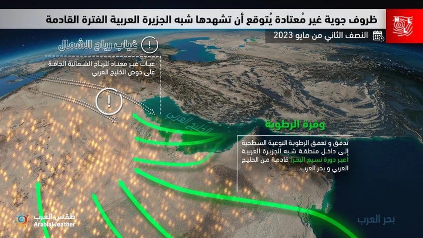 و يُراقب المُختصين في مركز طقس العرب مُستجدات النظام الجوي غير المُعتاد التي تشهده شبه الجزيرة العربية و تأثير ذلك على المنطقة.