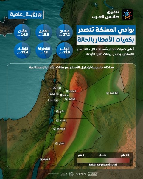 وفي المقابل، ما يزال الأداء المطري في معظم المناطق الأخرى داخل المملكة دون معدلاته الموسمية حتى الآن، إذ تشير البيانات المناخية إلى أن كميات الهطول المتراكمة في المدن الرئيسية والمرتفعات الجبلية ما تزال أقل من المعدل العام، رغم بعض التحسّن الطفيف الذي طرأ مؤخرًا.