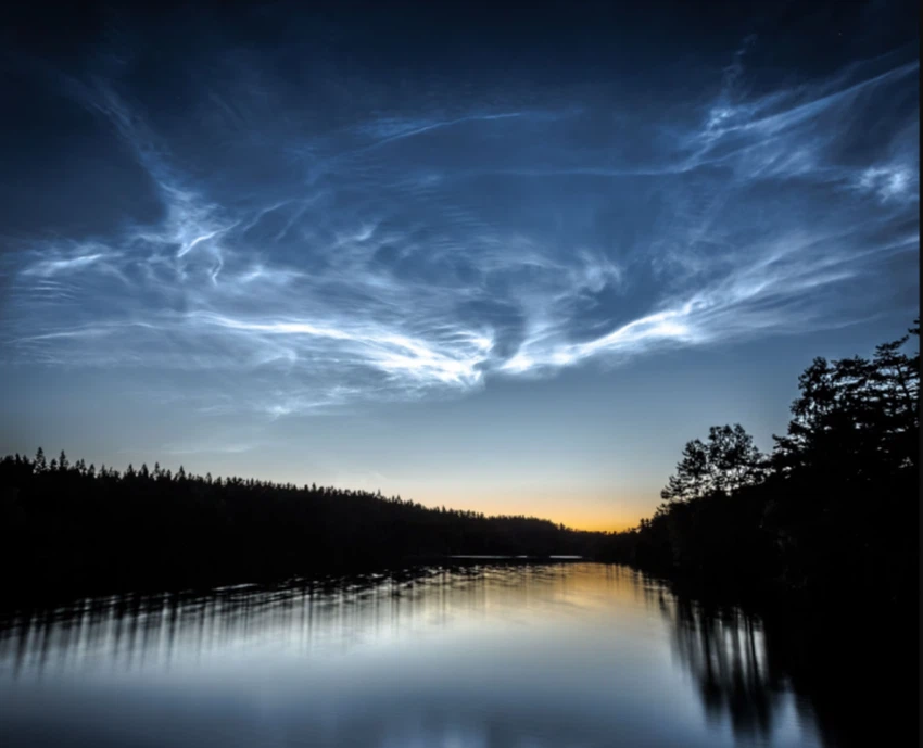 وأضاف أن غيوم الليل المضيئة هي تجمعات جليدية زرقاء "مكهربة" تطفو على حافة الفضاء، وتخضع للدراسة بواسطة المركبة الفضائية "أيم" التابعة لوكالة ناسا، والتي ترسم خرائط ظهورها حول القطبين الشمالي والجنوبي، وأوضح أنه لفترة طويلة لم يكن معروفًا كيف تتشكل هذه الغيوم، لكن البيانات الحديثة تشير إلى أنها تتكون عندما يكون الغلاف الجوي العلوي باردًا، مما يسمح بتشكل بلورات الجليد حول دخان الشهب، وقد تبين أن نحو 3% من كل بلورة جليدية في هذه الغيوم يتكون من غبار الشهب.