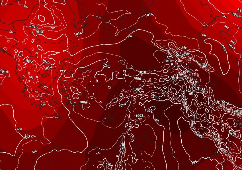وبحسب ذات الخرائط يحدث تغير في الأنظمة الجوية بالنصف الشمالي للكرة الأرضية مع إنتصاف شهر تموز بحيث تتراجع تأثيرات الكتل الهوائية الباردة في طبقات الجو العليا التي كانت تؤثر على الأراضي التركية وتتحرك نحو شمال القارة الأوروبية، وقد كانت تلك الكتل الهوائية الباردة في طبقات الجو العليا مُسببة للأجواء الصيفية المُعتدلة إلى الإعتيادية عموماً التي عاشتها منطقة شرق المتوسط بمافيها الأردن، ويسيطر بدلاً منها مُرتفع جوي قادم من المناطق المدارية في طبقات الجو العليا من الغلاف الجوي.