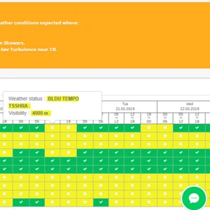 وكما تًوضح الصورة أعلاه يُزود نظام التبيه المبكر الخاص بالقطاع الجوي عملائنا في القطاع الجوي بكافة التنبيهات والظروف الجوية المُتوقعة لكل مطار من حيث تشكل الغبار أو الضباب والرؤية الأفقية الناجمة عنه وسرعة الرياح أو غزارة الأمطار، ويقوم بتفصيل الحالة الجوية في كل مطار بشكل دقيق وفي كل ساعه وتتغير هذه التوقعات بشكل دوري ودقيق وفقاً لآخر مخرجات الخوارزميات والأنظمة الداخلية والتي تقوم بتزويد البيانات لنظام الإنذار المبكر.