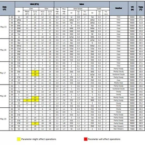 وكما هو مُوضح في الصُور المُرفقة أعلاه، فإن التقارير الدورية التي تصل عملائنا في القطاع البحري تزودهم بكافة التنبيهات والأخطار المُتوقعة لعدة أيام وبشكل دوري تتضمن كافة التفاصيل المُتعلقة بهم وبخاصة ارتفاع الموج وسرعة الرياح وغيرها ولعدة أيام.