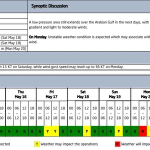 كما نقوم بتزويد عملائنا بتقارير خاصة مُدعومة بصور الأقمار الأصطناعية أو الرادارات أو المحطات الأرضية الخاصة بنا والمُنتشرة في الشرق الأوسط بما فيها المملكة،  حول أي حالة جوية وتفصيلها للعميل.