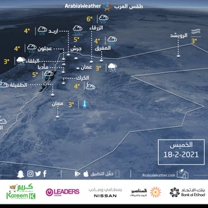 درجة الحرارة العظمى المتوقعة في الكرك: °5