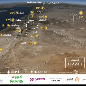 حالة الطقس ودرجات الحرارة المتوقعة في الاردن يوم السبت: