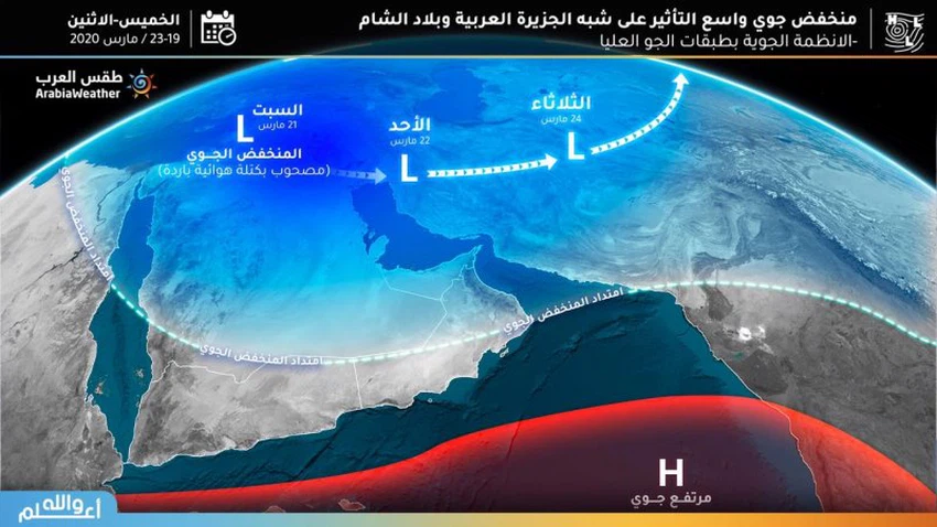 طقس العرب - يراقب طقس العرب تأثر كل من دولة الامارات و سلطنة عُمان بحالة جديدة من عدم الاستقرار الجوي اعتبارا من يوم غد الجمعة حيث تكون الفرصة مهيأة لتشكل غيوم ركامية رعدية يوم الجمعة على دولة الامارات، ثم لاحقا تشمل هذه الغيوم شمال و شرق سلطنة عُمان قبل أن تشمل حالة عدم الاستقرار الجوي باقي مناطق السلطنة بما في ذلك السواحل المطلة على بحر العرب.