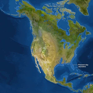 في حال ذاب كامل جليد الأرض، سيختفي كامل الوجه الساحلي الشرقي للقارة تحت المياه و هو يضم مدناً كبرى على رأسها نيويورك و ميامي، في حين ستتحول جبال كاليفورنيا في الغرب إلى مجموعة كبيرة من الجزر المحاطة بمياه المحيط الهادئ.