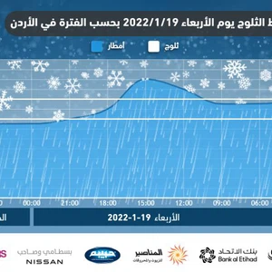 طقس العرب – م. ناصر حداد – تشير التوقعات الى اشتداد كبير في حدة الاجواء الباردة على المملكة اعتبارا من ساعات المساء الاولى من اليوم الاربعاء الموافق 19 كانون ثاني 2022، بحيث تتجدد الهطولات وتكون على شكل زخات متقطعة من الثلوج عموم المرتفعات الجبلية التي يزيد ارتفاعها عن 800 متر، وتكون متبوعه ليلا بموجة قوية من الجليد و الإنجماد على معظم المناطق بما في ذلك الطُرق الخارجية و الداخلية.