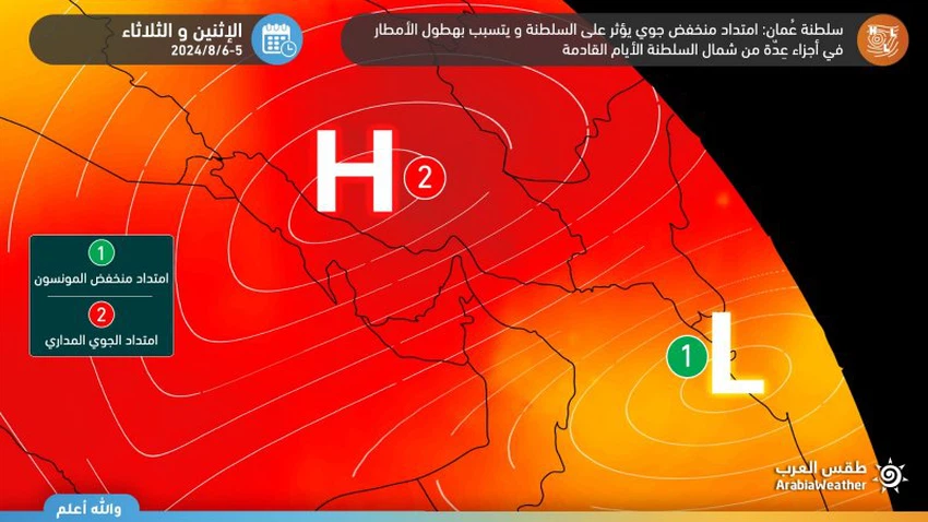و تأتي حالة عدم الاستقرار الجوي المُتوقعة على السلطنة الأيام القادمة، نتيجة ابتعاد المُرتفع الجوي شبه المداري عن أجواء السلطنة فاسحاً المجال امام تقدم ما يُعرف بمنخفض المونسون نحو شمال بحر العرب، و يتزامن ذلك مع تحفيز لما يعرف بالحزام المداري الوهمي ITCZ.