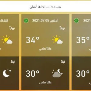 اما عن درجات الحرارة، فيُتوقع أن تنخفض درجات الحرارة خلال الأيام القادمة، نتيجة هبوب الرياح الموسمية تعمل على تلطيف الأجواء، ويسود طقس صيفي اعتيادي وحارّ بطبيعة الحال ودرجات حرارة دون معدلاتها الطبيعية، إذ تكون درجات الحرارة حول بداية الأربعينيات في مُعظم الولايات الداخلية، بينما تكون الأجواء أكثر اعتدالاً في المناطق الساحلية ودرجات حرارة في نهاية العشرينيات في المناطق الساحلية المُطلة على بحر العرب، بينما تكون اكثر حرارة في المناطق الساحلية المحاذية لبحر عُمان، كما تكون الرياح متقلبة الاتجاه ومعتدلة السرعة، تنشط احياناً وتكون مثيرة للأتربة والغبار في بعض المناطق الصحراوية.