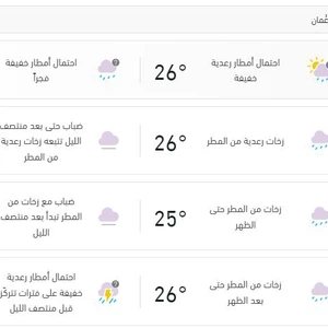 ويُتوقع أن يتزايد نشاط رياح المونسون الرطبة على مُحافظة ظفار خلال الأيام القادمة، لتنشط سحب الخريف على سواحل وجبال ظفار، وتترافق السحب بتساقط الرذاذ، تكون على شكل زخات مُتفرقة أحياناً، وتتراوح درجات الحرارة ما بين 23-27 درجة مئوية في مدينة صلالة بمشيئة الله.