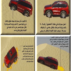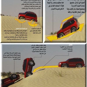 الأشكال التوضيحية أدناه توضح بعض الإجراءات التي قد تكون مفيدة للغاية في حالة الرغبة في السفر بسيراتك براً، حيثُ أنها تتقلل من فرصة وقوع حوادث التغريز في الأراضي الرملية.