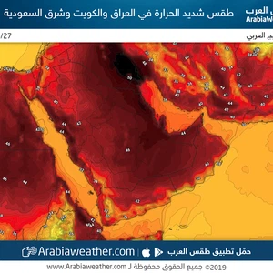طقس العرب - سنان خلف - يشتد تأثير الكتلية الهوائية الحارة على منطقة الخليج العربي، وبشكلٍ خاص على الكويت والأجزاء الشرقية من المملكة العربية السعودية وتالياً التفاصيل: