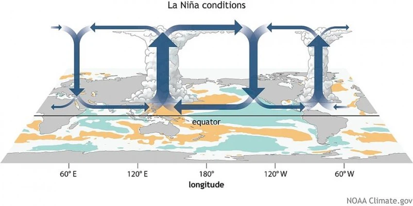 وفي التفاصيل، بات في حكم المُرجّح أن يشهد سطح المياه في المنطقة الاستوائية من المحيط الهادئ المزيد من التبريد خلال الأشهر القادمة، كنتيجة لارتفاع الضغط الجوي في شرق المحيط الهادئ على حساب انخفاضه في شمال القارة الأسترالية، الأمر الذي يؤدي إلى تزايد في نشاط الرياح التجارية، وتؤثر ظاهرة اللانينا بشكلٍ رئيسي على الأنظمة الجوية في الغلاف الجوي والتي تؤدي الى انعكاس ذلك على حالة الطقس في مختلف مناطق العالم.