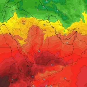 طقس العرب - تُشير الخرائط الجوية في مركز طقس العرب الإقليمي إلى حدوث ارتفاع قليل على درجات الحرارة في الكويت يوم السبت، والذي يصادف أنه أول أيام شهر رمضان المبارك فلكيًا، وتكون درجات الحرارة حول معدلاتها لمثل هذا الوقت من العام.