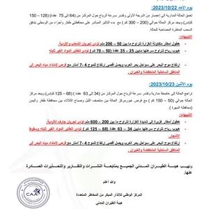 طقس العرب - سنان خلف - أصدرت الهيئة العامة للأرصاد الجوية في سلطنة عُمان قبل قليل التقرير رقم 1 حول تفاصيل وتطورات الحالة المدارية في بحر العرب، وفيما يلي نص التقرير: