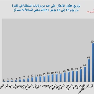 طقس العرب - سنان خلف - نشرت وزارة الثروة الزراعية والسمكية وموارد المياه في السلطنة توزيع وكميات الأمطار الهاطلة على السلطنة في الفنرة من 15 إلى 16 يوليو 2021م.