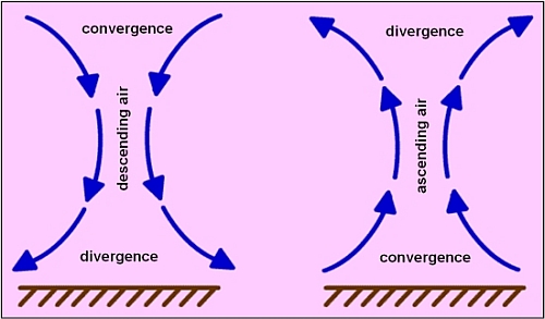 ويلاحظ ان التيارات تنحني الى الجنوب الشرقي ( عند رأس هذا النتوء) حيث تهب على الجزيرة العربية تيارات شمالية غربية دافئة جدا في الطبقات العليا والتي تساهم بقوة في بناء منطقة من الضغط المرتفع السطحي ايضا ، حيث تعمل التيارات الشمالية الغربية والتي تنتقل من زحم زاوي حاد (في العروض الاعلى حيث تتزاخم خطوط الطول ) الى زحم زاوي اقل حدة ( حيث يقل ازدحام خطوط الطول نتيجة لشكل كوكب الارض البيضاوي ) حيث تندفع هذه التيارات بسرعة اقل بالطبع من التيارات التي تقع خلفها في منطقة اليونان ونتيجة لهذا الانحناء ، مما يؤدي الى ما يطلق عليه ال (Convergence) ،حيث تتقارب جزئيات الهواء في الاعلى في المنطقة التي يحدث تباطؤ في التيارات ويهبط الهواء الى الاسفل بعكس المنطقة التي يحدث فيها تسارع في التيارات ومن ثم بناء منطقة من الضغط المرتفع الجوي ، وفي هذه الحالة يكون المرتفع الجوي متنينا وصلبا وعميقا.