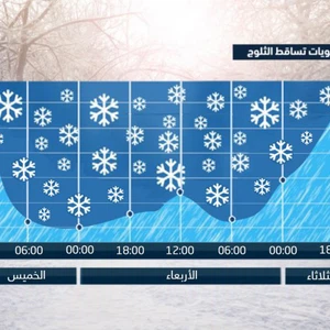 - ثلوج على فترات يُتوقع أن تتساقط فوق المرتفعات الجبلية التي تزيد عن 950-1000 متر عن سطح البحر.