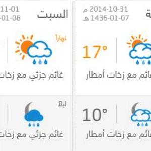 يوم السبت،تضعف الفعالية الجويّة بوجه عام،مع بقاء الفرصة قائمة لهُطول زخات محليّة من المطر،في أجزاء من شمال ووسط المملكة، ويبقى الطقس بارداً نسبياً.