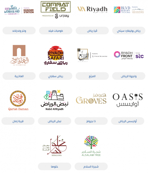 - بوليفارد رياض سيتي: من أكبر مناطق موسم الرياض هذه السنة بحيث تضمّ ممشى بطول 3 كلم، وتحتوي على ثمانية مناطق ثانوية تتميز كلّ منها بمجموعتها الخاصة من الفعاليات، المطاعم، المهرجانات، والمتاجر المصممة لجميع الأذواق والأعمار، بالإضافة إلى 500 لعبة إلكترونية في منطقة مخصصة للأطفال.