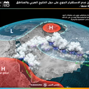 طقس العرب - سنان خلف - تتأثر قطر بمشيئة الله تعالى يوم الأحد بطقس غير مستقر، كنتيجة لتأثر المنطقة بحالة من عدم الإستقرار الجوي تُصنف بأنها متوسطة إلى "قوية الشدة" بوجه عام.