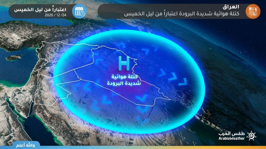 أولى الدول العربية التي ستستقبل هذه الكتلة الهوائية الباردة ستكون العراق وسوريا، وهما أكثر دولتين ستتأثران بالأجواء شديدة البرودة والجافة، حيث واعتبارا من ليل الخميس/الجمعة ستنخفض درجات الحرارة إلى ما دون الصفر المئوي ليلاً في شمال العراق و سوريا ويتشكل الصقيع والجليد هناك، على أن تشمل هذه الكتلة الباردة باقي مناطق الدولتين خلال نهار يوم الجمعة.