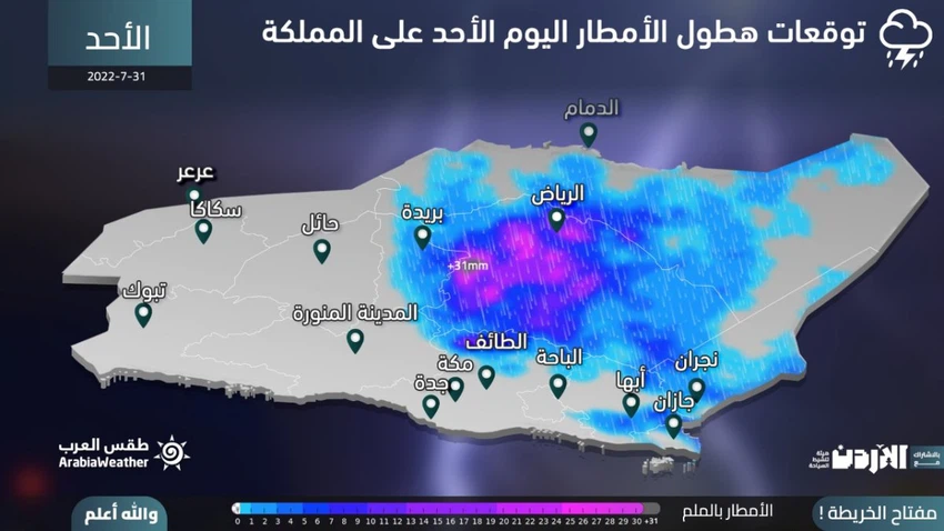 طقس العرب - من المُتوقع بمشيئة الله أن تبدأ التأثيرات المباشرة للحالة الماطرة وغير الاعتيادية على مدينة الرياض مع ساعات عصر ومساء اليوم الأحد بمشيئة الله.